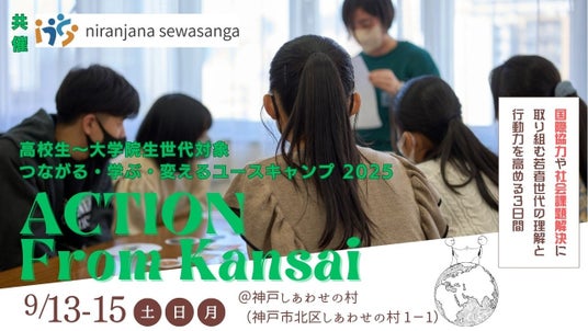 特定非営利活動法人ニランジャナセワサンガ(所在地:大阪府、代表理事:山本純平)は、特定非営利活動法人関西NGO協議会主催のもと、2025年9月13日(土)~15日(月・祝)にかけて、神戸「しあわせの村」にてユース向け合宿イベント「ACTION From Kansai ーつながる・学ぶ・変えるユースキャンプ2025」を共催いたします。