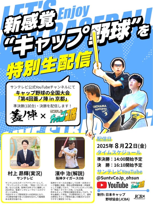 また、昨年度に引き続き、準決勝・決勝がサンテレビ公式YouTubeチャンネルで生配信される予定です。