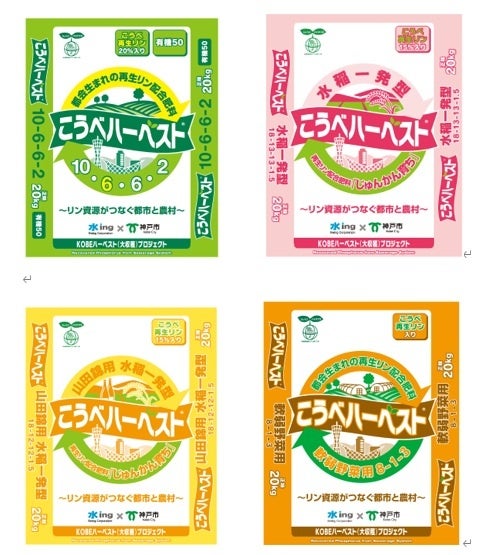 当社は、神戸市内で回収したリンを原料とした「こうべハーベスト」の製造・販売を行っています。「こうべハーベスト」は、『都市と農村をつなぐ』をコンセプトに下水道資源である再生リンの地域内循環を目指し製造されました。販売当初は下水処理場由来の原料というイメージが先行し、なかなか普及が進まなかったものの、神戸市と連携しながら、農業者向けの普及活動、市民向け農業関連イベントへの出展、出前授業による教育機関との連携等を長年実施してきた結果、現在では4種類(園芸用、水稲用、山田錦用、軟弱野菜用)に増え、神戸市内農家への普及が大きく進んでいます。