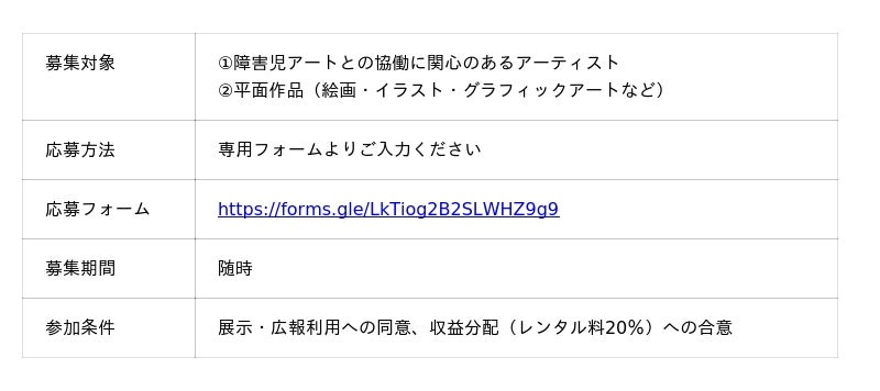 障害者アートや社会貢献活動に関心を持つアーティストのご応募をお待ちしています。