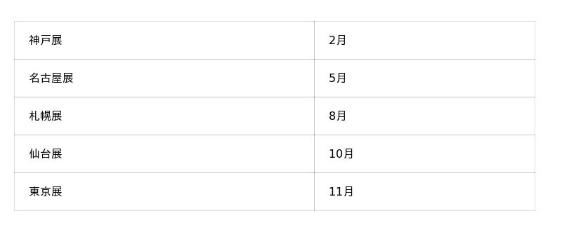ONEARTの完成作品は、以下のスケジュールで各地の展覧会にて発表されます。