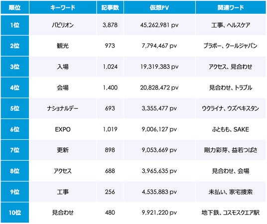 1位「パビリオン」の関連ワードかつ9位に入っている「工事」。パビリオンの建設工事をめぐるトラブルの報道が続いています。