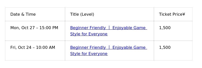 イベント検索サイト「Peatix」またはテニスイベント検索「テニスベア」からご確認・お申込みいただけます。