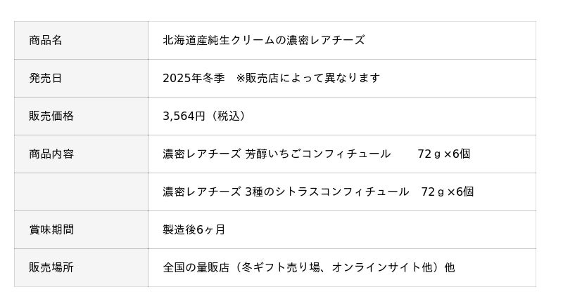 トーラク株式会社(本社:兵庫県神戸市東灘区向洋町西5丁目5番、代表取締役社長:毛利 功一郎)は、「北海道産純生クリームの濃密レアチーズ」 を全国の量販店のお歳暮コーナーにて発売いたします。