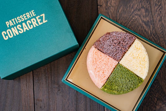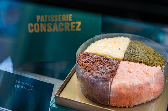 「パティスリーコンサクレ神戸北野店」では、シリーズを一度に楽しめる“4種アソート”を限定販売。ホールを4分割し、それぞれ異なる味わいが楽しめる特別仕様です。