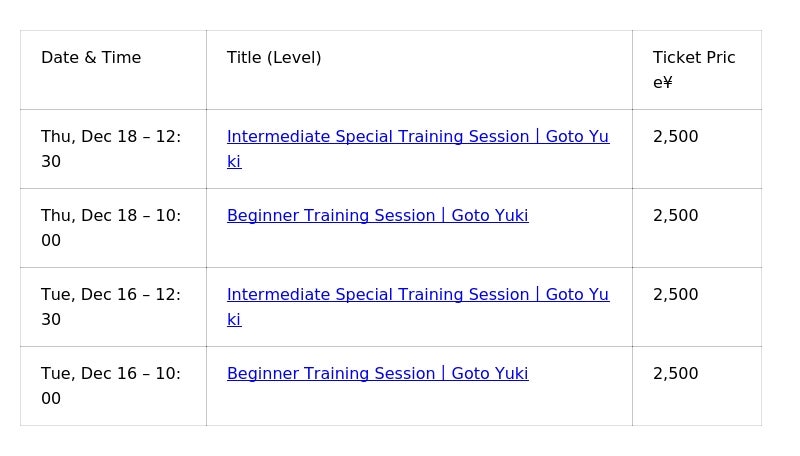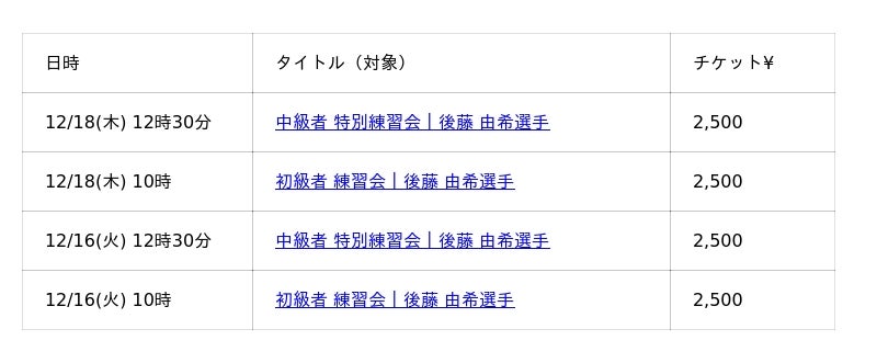 【リリース概要|後藤 由希 選手による 初級・中級 練習会】