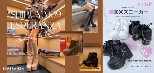 ワールドグループの神戸レザークロス株式会社が展開するシューズブランド「ESPERANZA(エスペランサ)」と「csT&P(シーエスティーアンドピー)」は、SHIBUYA109公式Instagramアカウントフォロワーへのアンケートをもとに製作した数量限定のスペシャルシューズを、11月14日(金)よりSHIBUYA109 ESPERANZA店で発売いたします。