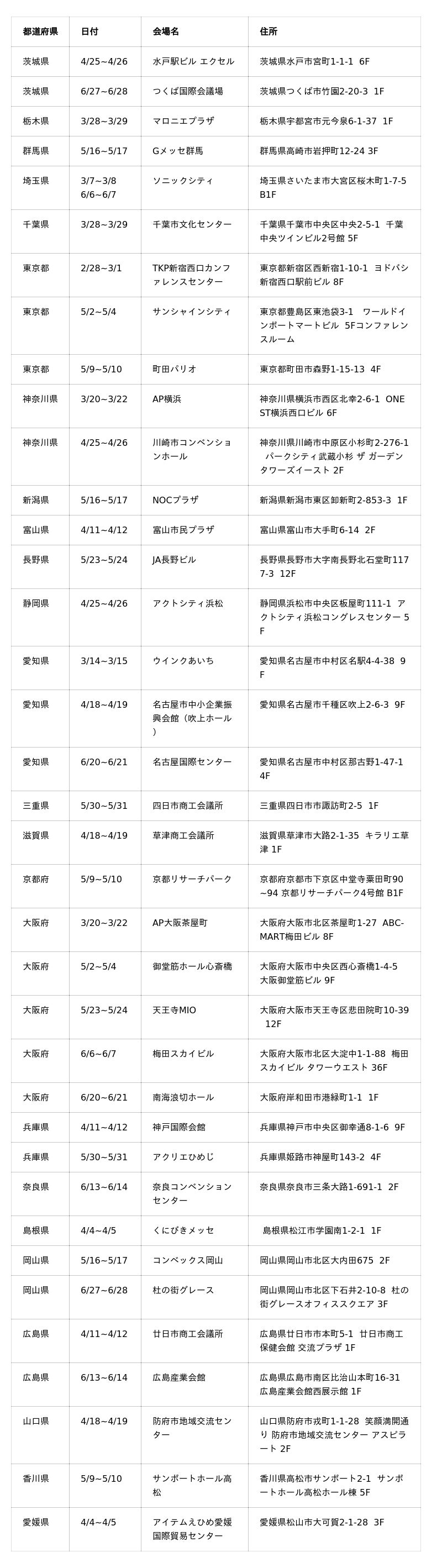 各会場の詳細