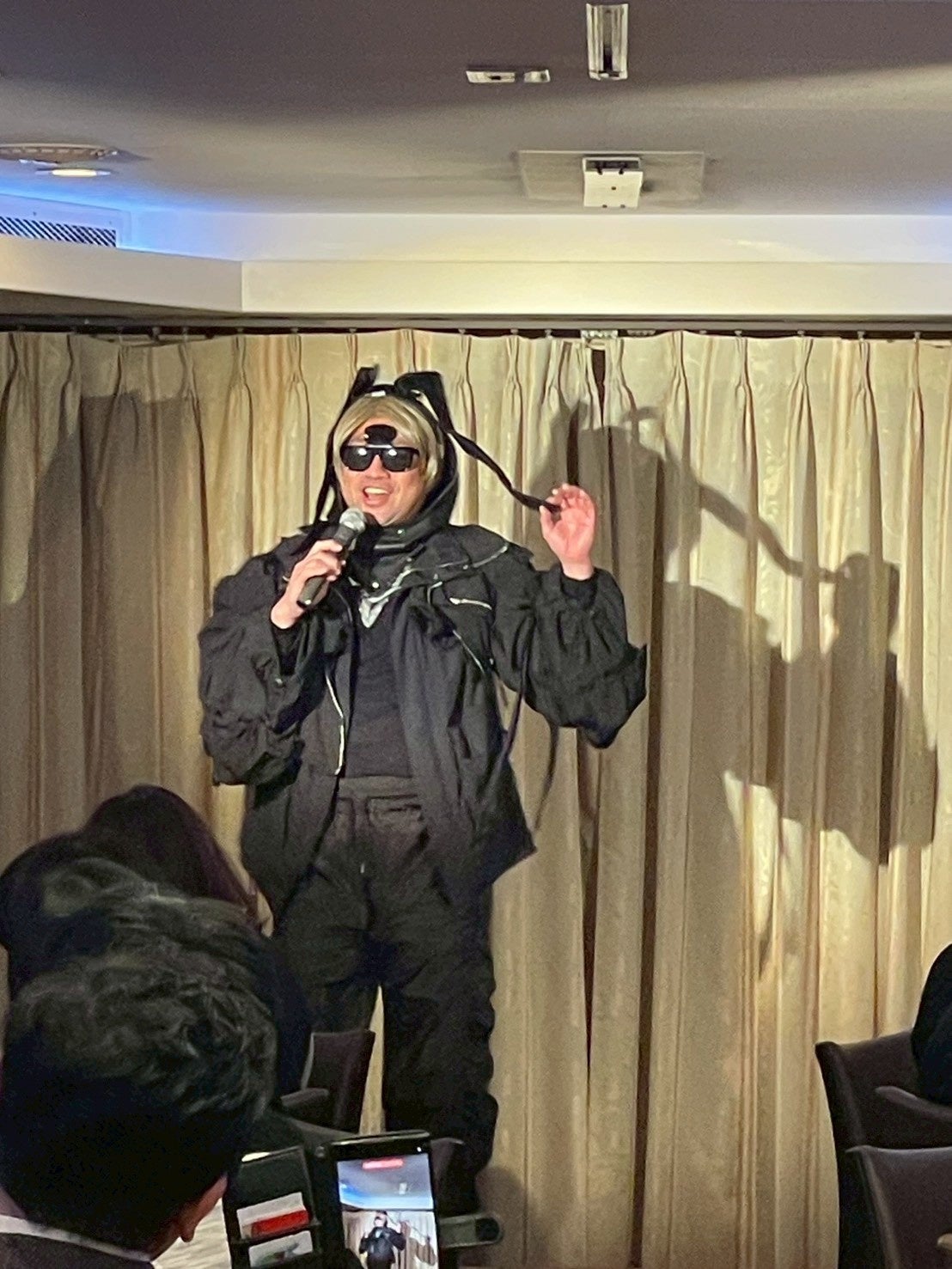 ドレッシーな装いに揃いの黒いバンダナを付けている参加者たちとコンセプト強めな衣装に身を包んだ主役の集い
