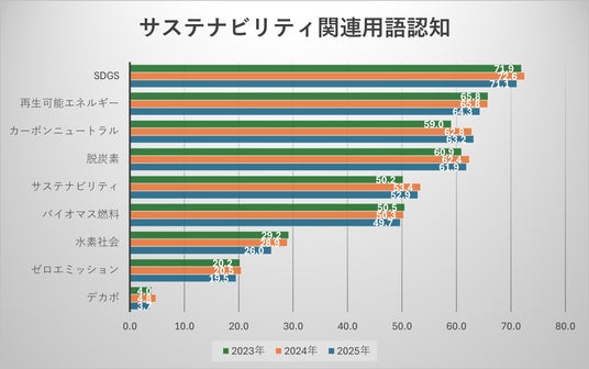 ・SDGs(71.1%)、再生可能エネルギー(63.4%)、カーボンニュートラル(63.2%)とTOP3は昨年と同じ結果に。