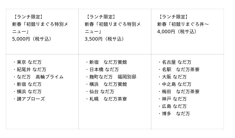 【「なだ万」新春 初競り鮪フェア実施概要】