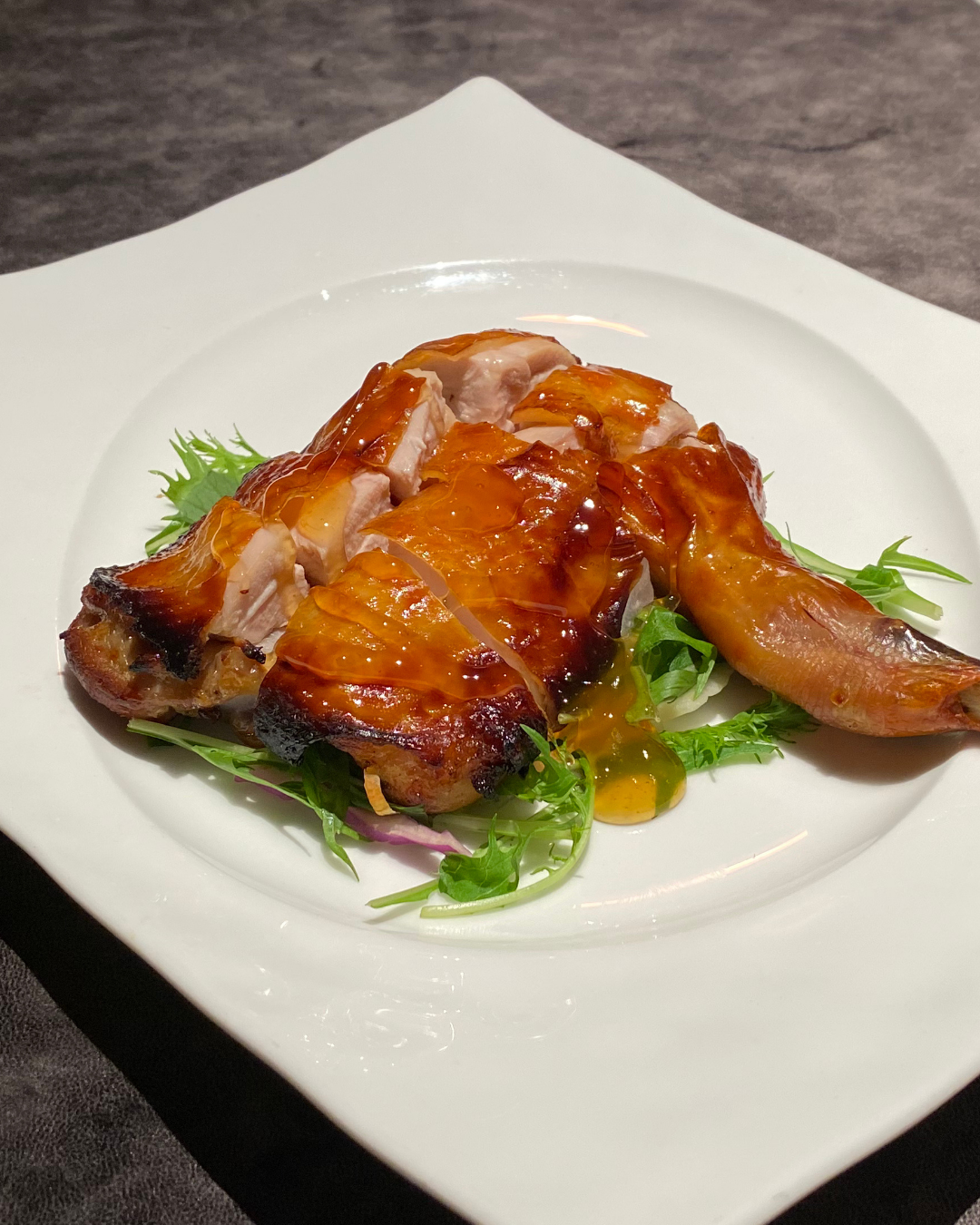 香ばしいチキンに甘酸っぱいプラムソース。チーズが加わり、驚きのハーモニー。