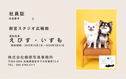 犬専門フォトスタジオ「棚原写真事務所」は、西宮市へスタジオ移転オープンに合わせ、同スタジオで撮影経験のある“社員犬・アルバイト犬101匹を募り、犬自身がPRを担当するユニークな広報活動を展開。