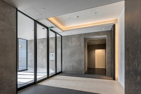 ・お客様を迎え入れるのに相応しい木調を配した、温かみのあるエントランスホール・各階に男女トイレを設置