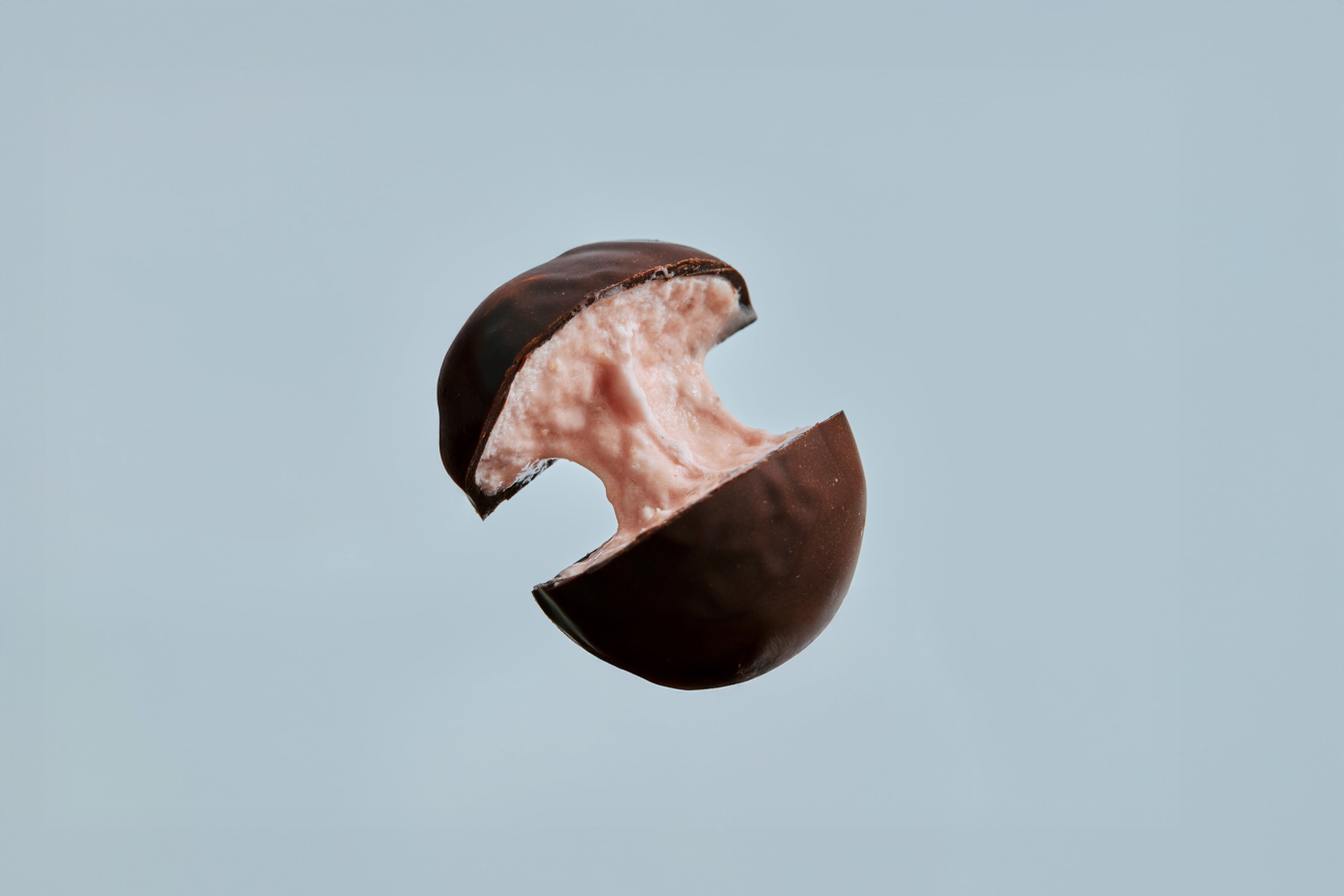 外側のチョコレートは少し力を入れただけで割れそうなほど繊細ながら、口の中でパリッと弾けた瞬間に、中から液状のチョコレートが溢れ出します。それは出会ったことのない、驚きに満ちた体験。