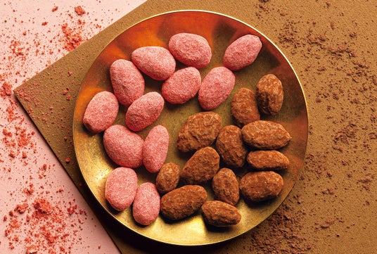 香ばしくローストしたアーモンドを、ほろ苦いカラメルとダークチョコレートでコーティングした「ココア」、ベリーをイメージさせるルビーチョコレートでコーティングした「ルビー」の2種類ご用意しました。各¥972