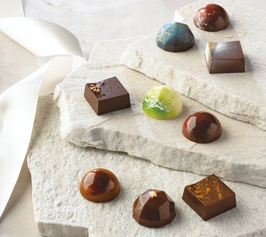 「la diversite=多様性」をコンセプトに、神戸の様々な文化や価値観を一粒一粒で表現したショコラ。チョコレートスイーツの考案者であるホテル製菓料理長 芳養の出身地、兵庫県・稲美町が一大生産地でもある六条大麦を使用したチョコレートクランチが入った「六条」、ホテル敷地内で採蜜したはちみつ“ポートピアハニー”を使用し、海の上に浮かぶポートアイランドで採れたはちみつをイメージした、鮮やかなブルーに黄色を散りばめたデザインの「ポートピアハニー」、灘の名門酒蔵“櫻正宗”の酒粕を使用した「酒粕と柚子」など、兵庫県の特産品を使用したガナッシュをお愉しみいただけます。・4個入り ¥1,296