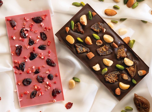 香り高いカカオ70%のチョコレートに、香ばしいアーモンドやいちじくの食感が楽しい「ダーク」、ストロベリーとクランベリーでフルーティーさが引き立つ「ルビー」の2種類ご用意しました。各¥1,728