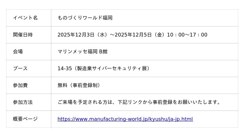2025年12月3日(水)~5日(金)マリンメッセ福岡にて、「セキュリオ」のセキュリティ教育系機能を体験していただけます