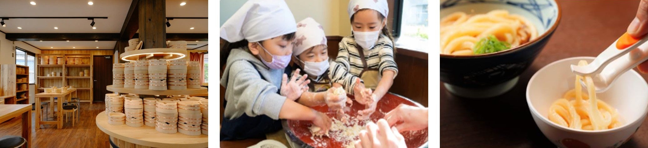 また、こども達に食の楽しさや尊さを伝える「食育活動」にも積極的に取り組んでいます。「こどもうどん教室」では、うどんを粉と塩と水を手で混ぜるところから体験でき、キッチンカーを用いての出張教室も日本中で実施をしています。そして、環境面ではプラスチック使用量の削減にも取り組んでいます。店内では繰り返し使用可能な食器の活用や、テイクアウト商品のカトラリーやビニール袋へのバイオプラスチック配合など、石油由来素材の使用削減を進めています。