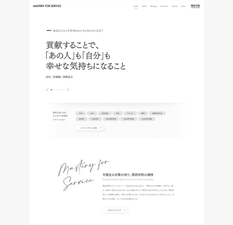 今後もブランドサイトでは“Mastery for Service”を実践する卒業生の言葉、生き方を紹介し、本学のブランディング活動に努めてまいります。