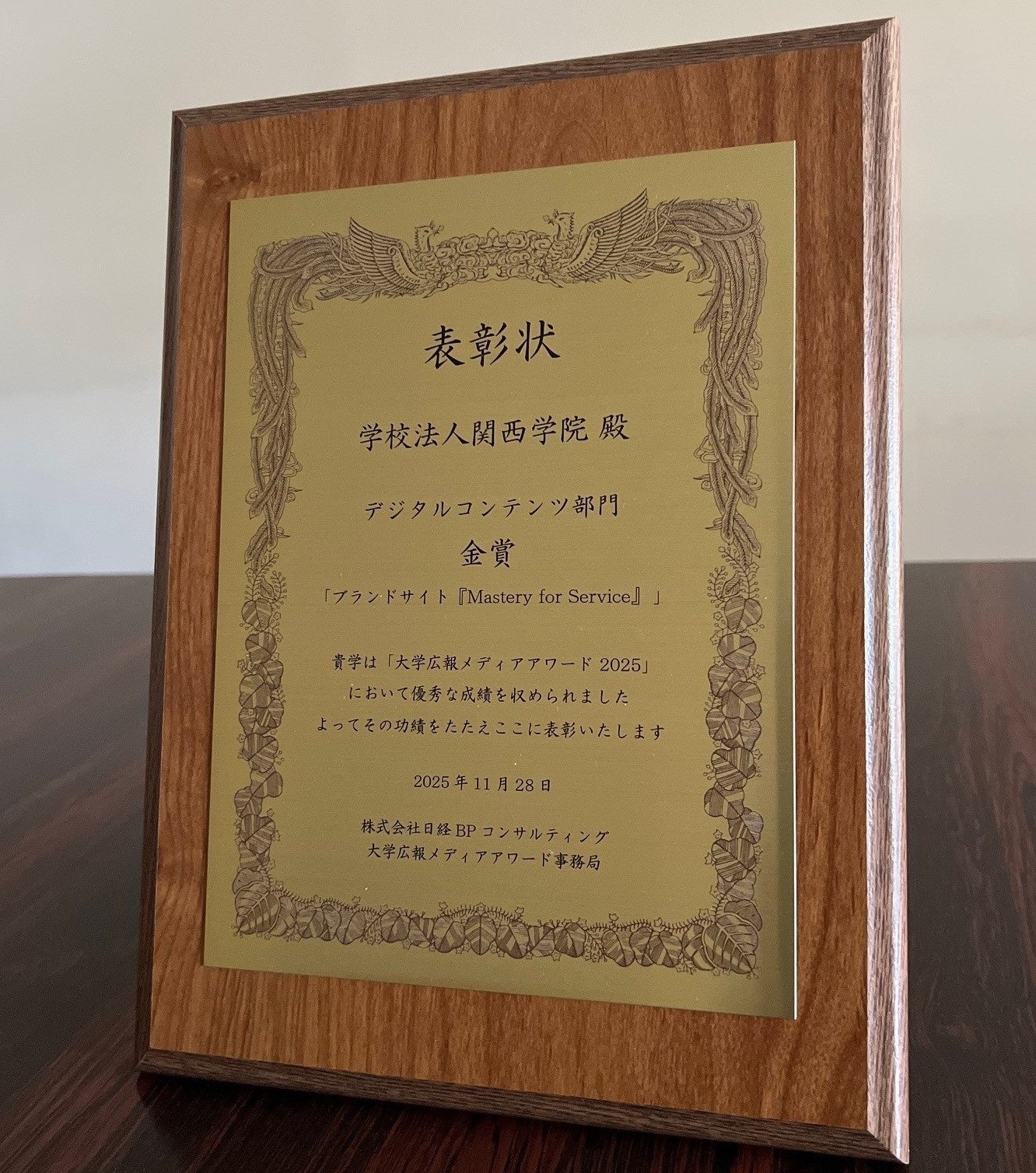 株式会社日経BPコンサルティングが主催する「大学広報メディアアワード 2025」の審査結果が11月28日に発表され、関西学院ブランドサイト『Mastery for Service』がデジタルコンテンツ部門で金賞(最高位)を受賞しました。