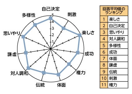 <図2:中学生の価値観の平均チャートとランキング> (C) KCJ GROUP