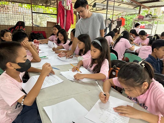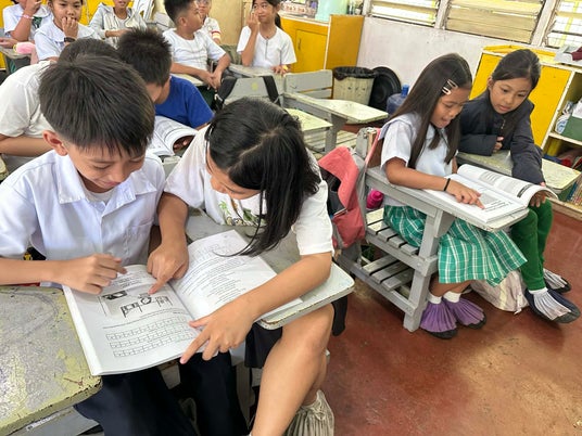 フィリピンの教育現場では、平時から教室不足や教材不足、教員不足が慢性化しています。多くの公立学校では、1つの教室に50人以上の児童が詰め込まれ、教科書を複数人で共有して授業を受ける状況も珍しくありません。