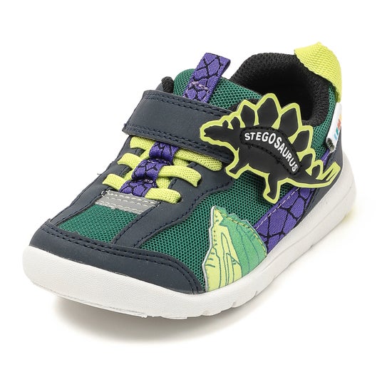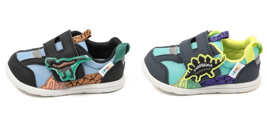 今回の新商品では、ベルトを開けるとキュートな顔がのぞく「パンダ」「レッサーパンダ」のスニーカーが登場します。また、“恐竜”モチーフの新商品では、ティラノサウルスやステゴサウルスのシルエットがオシャレなシューズを展開。ビタミンカラーで子どもらしい元気なデザインに仕上げました。