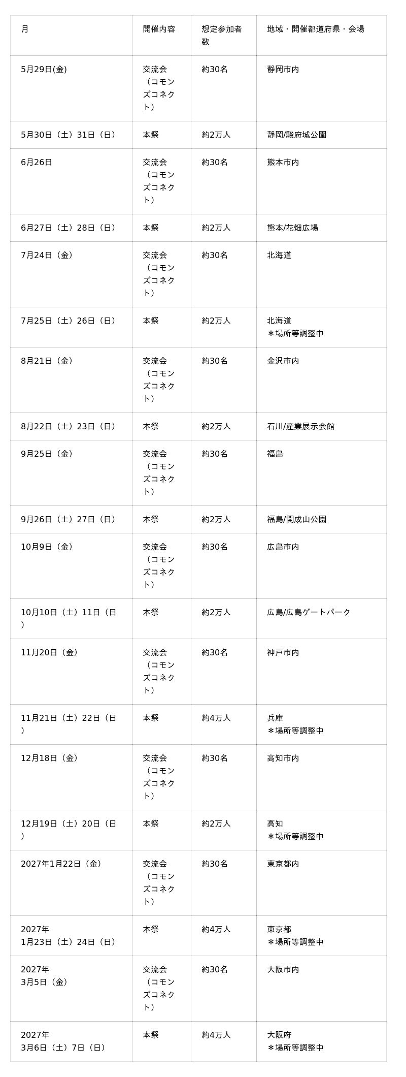 ・ 開催頻度:毎月1地域ずつ全国開催