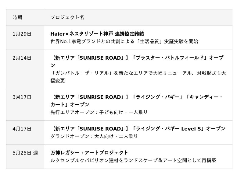 約2万平方メートル の新エリア大規模開発でテーマパークに3つのアクティビティが新登場、グローバル企業との連携や万博レガシーなど、5つの新事業を5か月連続で展開いたします。