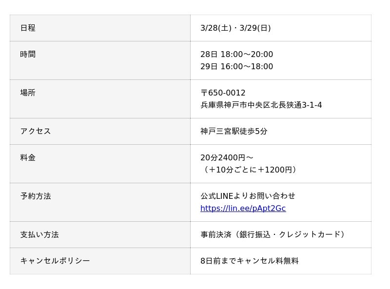 占い師養成CAMPの説明会と同時に、くるとん先生の対面鑑定も神戸で行います。すでにご予約いただきました方、誠にありがとうございます。くるとん先生が神戸で鑑定される貴重な機会になりますので、奮ってご参加ください。