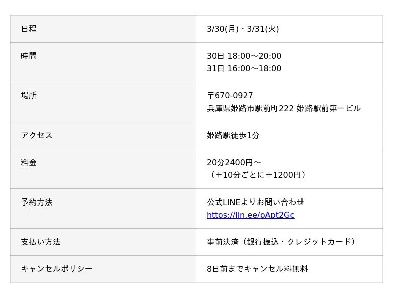 占い師養成CAMPは毎週オンラインで説明会を行っておりますが、このたび姫路校で直接個別説明会を行います。