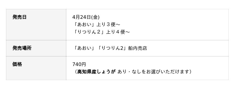 ジャンボフェリーは、今後も地域の魅力を生かした船内メニューの充実に取り組み、お客様により豊かな移動時間を提供してまいります。