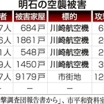 明石 狙われた航空機工場 関西で最初の本格空襲(1)フルーツケーキ1号 2021/08/14 05:30 1945年1月19日の昼すぎ、空爆を受ける川崎航空機工業明石工場(米国立公文書館所蔵) ツイート シェア LINE 記事へ