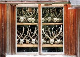 「グループで狩ると後日、記念に欲しがる人がいる」ため、仕留めた人の名前と日付を上あごに記して残す。左右に大きく開いた立派な角は「木が若く広々とした山で育った証し」。明快な解説に聞き入る。「ここで寝たら100パーセント金縛りに遭う。数の力ってすごいよな」。私、急用を思い出しました。さようなら。(井上太郎)