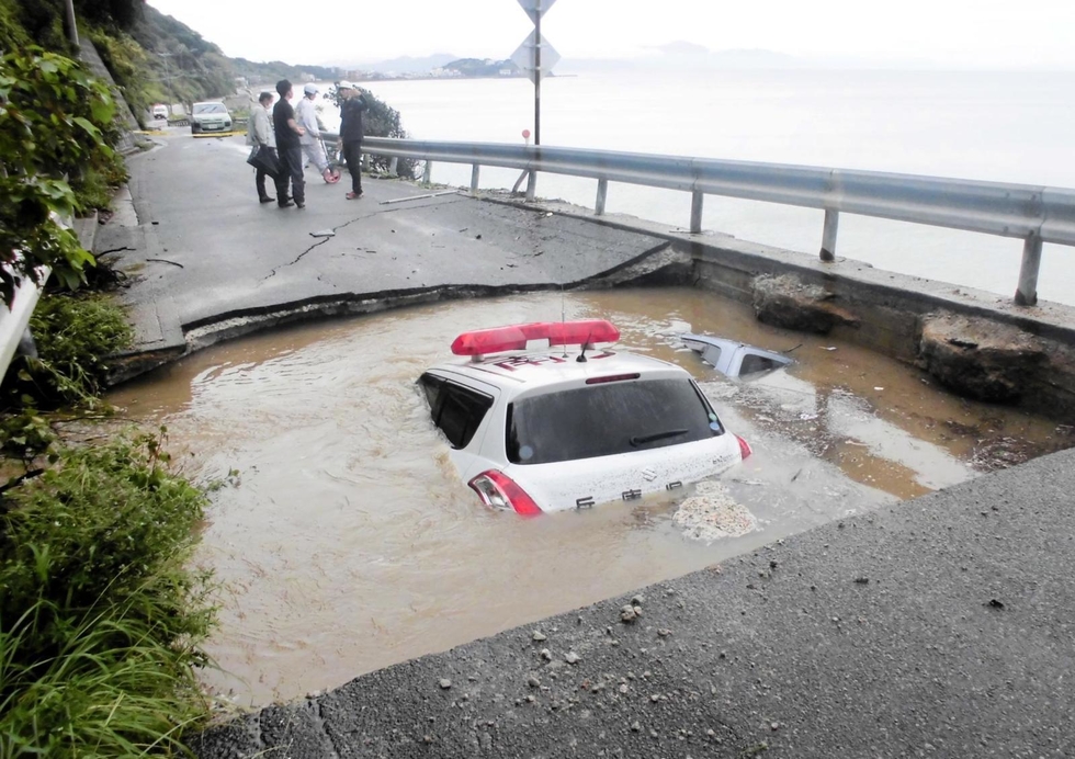 水がたまった巨大穴に軽自動車とパトカー転落、激しい雨で陥没か 運転の2人は窓から脱出 南あわじの県道 2023/9/11 20:14 印刷 陥没した道路にはまったパトカー=11日午前、南あわじ市内(兵庫県警提供) 記事へ戻る 関連記事 【写真】道路に長さ6mの巨大な穴 大雨で陥没 大雨、神戸市内で観測史上最大 6時間雨量130ミリ 石垣崩落、道路陥没、飲食店水浸し… 運転中に豪雨、車が水没!脱出には窓を割るしか…何使う?もしものときの対処法、動画で紹介 「やっちゃん、助けて!」「待っとけよ」─。台風で浸水の軽トラ、抱きかかえて80代女性2人救出 会社員に善行賞 周囲より低く、冠水の恐れある「アンダーパス」 停電時、特に注意が必要な理由 関連記事 【写真】道路に長さ6mの巨大な穴 大雨で陥没 大雨、神戸市内で観測史上最大 6時間雨量130ミリ 石垣崩落、道路陥没、飲食店水浸し… 運転中に豪雨、車が水没!脱出には窓を割るしか…何使う?もしものときの対処法、動画で紹介 「やっちゃん、助けて!」「待っとけよ」─。台風で浸水の軽トラ、抱きかかえて80代女性2人救出 会社員に善行賞 周囲より低く、冠水の恐れある「アンダーパス」 停電時、特に注意が必要な理由