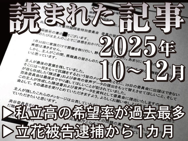 2025年も残りわずか。神戸新聞NEXTでは今年も、多くの話題やニュースを配信してきました。年末の恒例企画として、中でもよく読まれた記事を4回にわたって紹介します。最終回となる第四弾は10~12月の配信記事です。