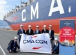 神戸港に2日、日本と欧州を結ぶ定期コンテナ航路が開設された。新航路は日本と欧州を積み替えなしで結ぶ唯一の航路で、フランスの海運大手「CMA CGM」が運航する。この日初入港したコンテナ船内では記念式典が開かれ、同社や港を管理する神戸市の関係者らが参加した。
