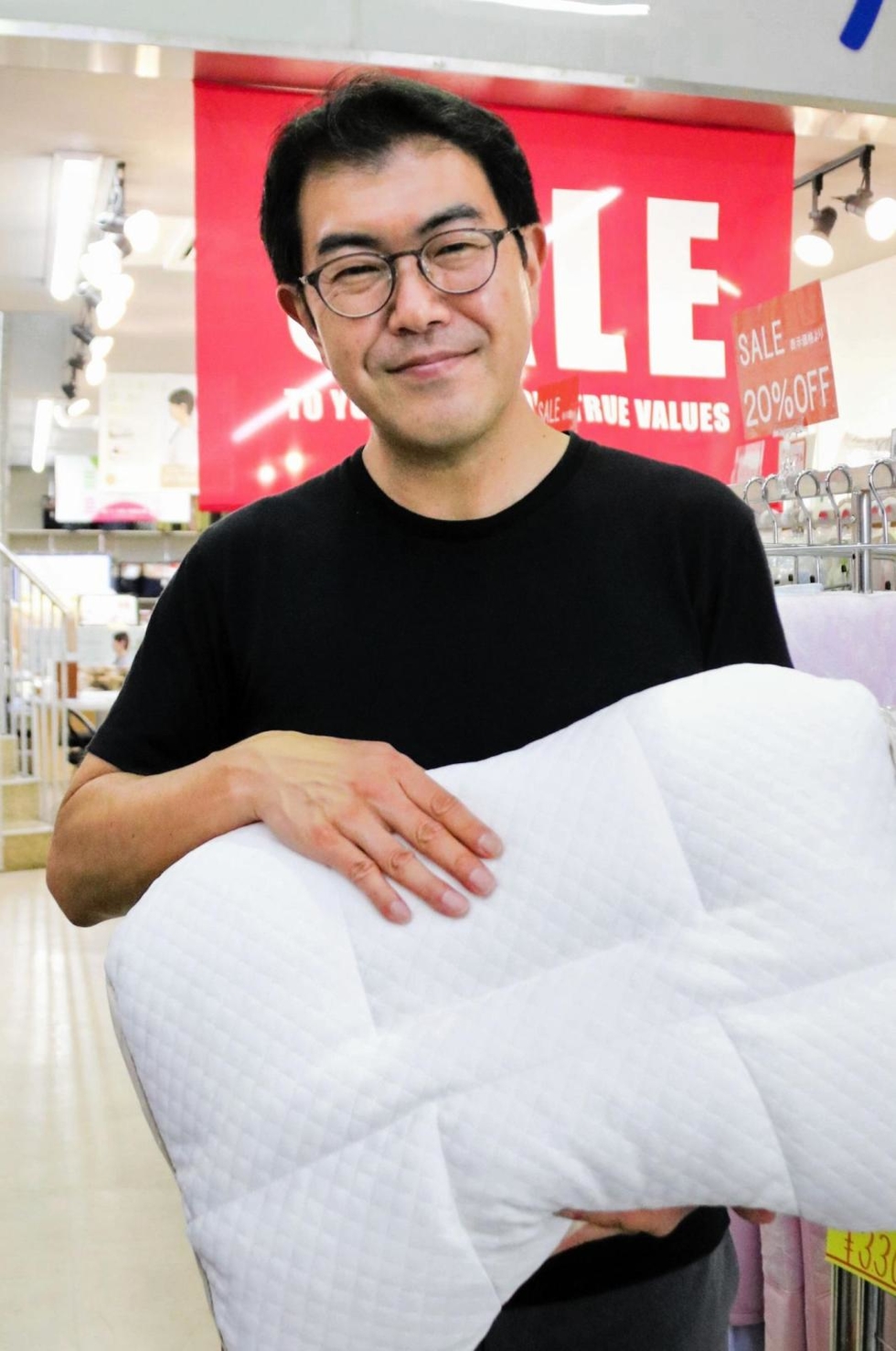 <ひと探訪>創業90年「今井ふとん店」3代目・今井秀和さん 眠ることもっと大切に 2023/7/31 05:30 印刷 阪神 連載阪神 創業90年の「今井ふとん店」3代目の今井秀和さん=尼崎市神田中通3 記事へ戻る 関連記事 シーツっていつ洗えばいいの? メーカーに聞いた 毛布は掛け布団の上か下か問題、西川に最新知見を聞いた 夜型人間にとって、早起きは三文の損? 夜中に何回も起きる!保護者たちに聞いた、「睡眠の悩み」 「寝る前にぬり絵をするとよく眠れる」説は本当?→繰り返される絵柄や細かい絵柄がさらに効果的 関連記事 シーツっていつ洗えばいいの? メーカーに聞いた 毛布は掛け布団の上か下か問題、西川に最新知見を聞いた 夜型人間にとって、早起きは三文の損? 夜中に何回も起きる!保護者たちに聞いた、「睡眠の悩み」 「寝る前にぬり絵をするとよく眠れる」説は本当?→繰り返される絵柄や細かい絵柄がさらに効果的 きょうの注目記事 スカイマーク 神戸空港発の札幌、那覇便を1日1往復ずつ増便 3/10 16:19 経済 神戸空港 <岡崎忠彦社長が語る ファミリアは止まらない>(4)脱・永遠の定番 3/10 05:30 経済 ファミリア 経済連載まとめ読み 2月の衆院選、公選法違反容疑で2人摘発 県警、取締本部を解散 3/10 16:54 平時から災害に備えを 神戸で18日にワークショップ 3/10 16:44 社会 神戸 防災 技能グランプリ、兵庫県選手団が特別賞【入賞者名簿あり】 3/10 17:15 経済 たつのの幻スイーツ「友君羊羹」たった1人で味を守り続ける主婦 3/10 05:30 西播 グルメ 今冬の但馬、最深積雪は平年の1.3~1.5倍 3/10 05:30 但馬 大幅赤字の兵庫県立10病院、MRIなど高額機器更新を1年凍結 3/9 19:55 社会 医療 水頭症、AI活用し高精度で発見 姫路の共同研究グループが技術開発 3/10 05:30 姫路 医療 播州釣り針継承、若手社長が奮闘 創業80年、小野の「はりよし」 3/10 05:30 北播 経済 <神戸国際大付 いざセンバツ-家族からのエール>末っ子の面倒みるお兄ちゃん 3/10 05:30 神戸 神戸国際大付属高校 高校野球 高校野球連載 アクセサリー型裁縫グッズ登場、ガチャガチャで販売へ 加古川の「音琴」企画 3/10 05:30 東播 経済 きょうの注目記事 スカイマーク 神戸空港発の札幌、那覇便を1日1往復ずつ増便 3/10 16:19 経済 神戸空港 <岡崎忠彦社長が語る ファミリアは止まらない>(4)脱・永遠の定番 3/10 05:30 経済 ファミリア 経済連載まとめ読み 2月の衆院選、公選法違反容疑で2人摘発 県警、取締本部を解散 3/10 16:54 平時から災害に備えを 神戸で18日にワークショップ 3/10 16:44 社会 神戸 防災 技能グランプリ、兵庫県選手団が特別賞【入賞者名簿あり】 3/10 17:15 経済 たつのの幻スイーツ「友君羊羹」たった1人で味を守り続ける主婦 3/10 05:30 西播 グルメ 今冬の但馬、最深積雪は平年の1.3~1.5倍 3/10 05:30 但馬 大幅赤字の兵庫県立10病院、MRIなど高額機器更新を1年凍結 3/9 19:55 社会 医療 水頭症、AI活用し高精度で発見 姫路の共同研究グループが技術開発 3/10 05:30 姫路 医療 播州釣り針継承、若手社長が奮闘 創業80年、小野の「はりよし」 3/10 05:30 北播 経済 <神戸国際大付 いざセンバツ-家族からのエール>末っ子の面倒みるお兄ちゃん 3/10 05:30 神戸 神戸国際大付属高校 高校野球 高校野球連載 アクセサリー型裁縫グッズ登場、ガチャガチャで販売へ 加古川の「音琴」企画 3/10 05:30 東播 経済 阪神新着ニュース 阪神新着ニュース
