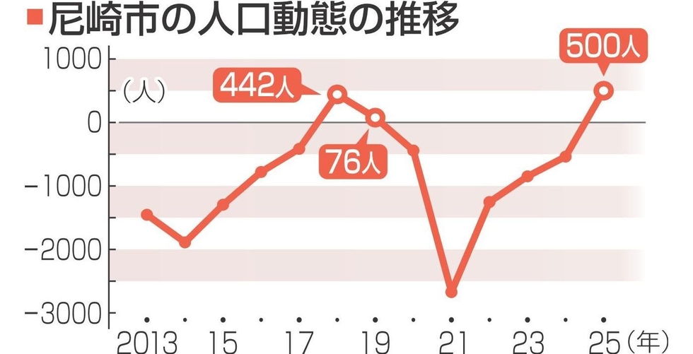 尼崎市、6年ぶり人口増 転入超過、58年ぶり3000人台 外国人が半数超占める 2025年 2026/2/18 05:30 印刷 阪神 地方行政 神戸新聞NEXT 記事へ戻る 関連記事 交通トラブルの相手男性になたを示して脅迫 容疑で69歳男を逮捕 川西 新五輪王者・りくりゅうの足元支えた名古屋の職人集団 フィギュアペア 神戸スティーラーズ新加入6選手が意気込み 上ノ坊、充実「毎日が成長」 有馬高生ら車いす寄贈、バザーや募金活動で 市社協に 「目に見えない障害」は理解得づらい 脳機能障害ある男性が講演 関連記事 交通トラブルの相手男性になたを示して脅迫 容疑で69歳男を逮捕 川西 新五輪王者・りくりゅうの足元支えた名古屋の職人集団 フィギュアペア 神戸スティーラーズ新加入6選手が意気込み 上ノ坊、充実「毎日が成長」 有馬高生ら車いす寄贈、バザーや募金活動で 市社協に 「目に見えない障害」は理解得づらい 脳機能障害ある男性が講演 きょうの注目記事 明石の花火大会、再開の可能性は? 市が調査報告 分散型も想定、安全面や経費で課題山積 3/7 05:30 県庁建て替えで六アイに仮移転、定期代は年1億3000万円増 六甲ライナー混雑回避へ通勤分散検討 3/6 20:35 神戸国際大付VS九州国際大付 明治神宮決勝の雪辱期す 青木監督「縁を感じた」 センバツ 3/7 05:30 東洋大姫路VS花咲徳栄 03年に激闘、因縁の相手と 松本主将「自分たちが打ち勝つ」 センバツ 3/7 05:30 <カーテンコール>舞台の経験、まちに活力 元俳優、お笑い芸人の「まつじゅん」 3/7 05:30 洲本市長選・市議選、8日に投開票 各陣営、最後の訴えに奔走 3/7 05:30 洲本市長選の出口調査結果を速報します 3/7 06:00 加古川市立幼稚園と保育園 5園が再編で今月末閉園へ 7日にお別れイベント 3/6 05:30 藤井六冠「100年残る棋譜を」 永世竜王たたえ、対局の舞台となった京都競馬場に記念碑 3/7 06:00 JR姫路-英賀保駅間に新駅「手柄山平和公園」14日開業 10月開設予定の新アリーナの最寄り 3/6 18:35 兵庫県の公立高入試、初の定員割れ 長田・御影・県伊丹など進学校も 私立人気が影響か 3/5 20:45 姫路市議会で代表質問 8会派が26年度予算案の施策問いただす 3/7 05:30 きょうの注目記事 明石の花火大会、再開の可能性は? 市が調査報告 分散型も想定、安全面や経費で課題山積 3/7 05:30 県庁建て替えで六アイに仮移転、定期代は年1億3000万円増 六甲ライナー混雑回避へ通勤分散検討 3/6 20:35 神戸国際大付VS九州国際大付 明治神宮決勝の雪辱期す 青木監督「縁を感じた」 センバツ 3/7 05:30 東洋大姫路VS花咲徳栄 03年に激闘、因縁の相手と 松本主将「自分たちが打ち勝つ」 センバツ 3/7 05:30 <カーテンコール>舞台の経験、まちに活力 元俳優、お笑い芸人の「まつじゅん」 3/7 05:30 洲本市長選・市議選、8日に投開票 各陣営、最後の訴えに奔走 3/7 05:30 洲本市長選の出口調査結果を速報します 3/7 06:00 加古川市立幼稚園と保育園 5園が再編で今月末閉園へ 7日にお別れイベント 3/6 05:30 藤井六冠「100年残る棋譜を」 永世竜王たたえ、対局の舞台となった京都競馬場に記念碑 3/7 06:00 JR姫路-英賀保駅間に新駅「手柄山平和公園」14日開業 10月開設予定の新アリーナの最寄り 3/6 18:35 兵庫県の公立高入試、初の定員割れ 長田・御影・県伊丹など進学校も 私立人気が影響か 3/5 20:45 姫路市議会で代表質問 8会派が26年度予算案の施策問いただす 3/7 05:30 阪神新着ニュース 阪神新着ニュース