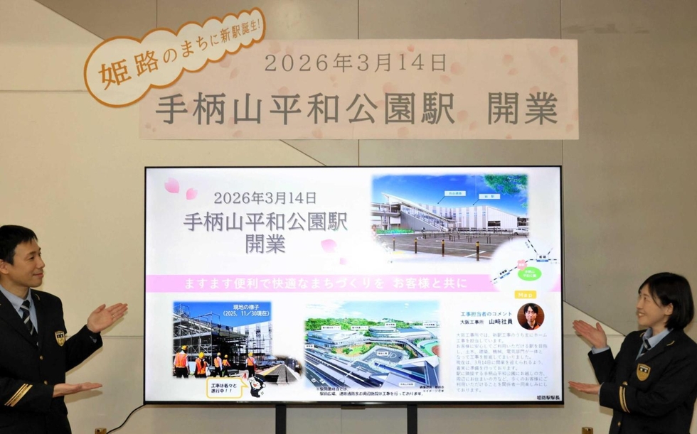 3月開業のJR手柄山平和公園駅 工事の経過、動画で紹介 姫路駅構内に液晶パネル設置 2026/1/6 05:30 印刷 姫路 JR西日本 手柄山平和公園駅の工事経過が分かる液晶パネル=JR姫路駅 記事へ戻る 関連記事 【写真】建設が進む手柄山平和公園駅の駅舎 兵庫の西播磨へ「幻の鉄路」山電に壮大な延伸計画あった 謎の図面、公民館で見つかる 山電大塩駅の珍景「はみ出し停車」解消 ホーム延長、安全確保の「ドアカット」終了へ 古代遺跡のような柱、何本も空へ モノレール運休から半世紀 長屋の部屋、内向きの窓を開けると目の前に 絶滅危惧のオニバス群生を確認 姫路のため池、国内最大規模か 昨年1株見つかり急激に今夏繁殖 関連記事 【写真】建設が進む手柄山平和公園駅の駅舎 兵庫の西播磨へ「幻の鉄路」山電に壮大な延伸計画あった 謎の図面、公民館で見つかる 山電大塩駅の珍景「はみ出し停車」解消 ホーム延長、安全確保の「ドアカット」終了へ 古代遺跡のような柱、何本も空へ モノレール運休から半世紀 長屋の部屋、内向きの窓を開けると目の前に 絶滅危惧のオニバス群生を確認 姫路のため池、国内最大規模か 昨年1株見つかり急激に今夏繁殖 きょうの注目記事 震災で右脚粉砕骨折した神戸の女性 心の浮き沈み記した31年前の日記 1/8 18:00 社会 神戸 震災31年 みんなの1.17 「あの震災を忘れない」 街に残した焼けた電柱は「語り部」 1/8 17:45 社会 瞬感 震災31年 神戸 神戸・リムジンバス事故 乗客証言「事故直前、上半身ふらふら」 1/8 19:06 春高バレー市尼崎が敗退、幅のある攻撃に対応できず 1/8 19:51 スポーツ バレー 市尼崎高校 高校スポーツ 姫路で鳥インフル まん延防止の対応確認 周辺市町も警戒 1/8 16:40 姫路 経済 社会 姫路の鳥インフル発生受け、加古川市内に消毒ポイント開設 1/8 19:10 東播 神戸スティーラーズ、10日に東京SG戦 SH日和佐、引退表明の流と「バチバチとやり合いたい」 1/8 18:30 スポーツ ラグビー 「第2回ゆずりは賞」に児童生徒51人6団体【名簿あり】 1/8 16:24 社会 東京への税収偏在是正方針 久元市長「歓迎している」 1/8 17:22 社会 神戸 地方行政 公明党兵庫県本部、神戸で新春年賀会 自民議員のあいさつなし 1/8 20:30 社会 波の輪飾りに上昇する飛行機 神戸空港開港20年のロゴ決定 関西エアポート神戸 1/8 19:04 経済 神戸空港 神戸 関西エアポート <随想>住吉美紀 神戸に呼ばれて 1/8 16:00 随想 きょうの注目記事 震災で右脚粉砕骨折した神戸の女性 心の浮き沈み記した31年前の日記 1/8 18:00 社会 神戸 震災31年 みんなの1.17 「あの震災を忘れない」 街に残した焼けた電柱は「語り部」 1/8 17:45 社会 瞬感 震災31年 神戸 神戸・リムジンバス事故 乗客証言「事故直前、上半身ふらふら」 1/8 19:06 春高バレー市尼崎が敗退、幅のある攻撃に対応できず 1/8 19:51 スポーツ バレー 市尼崎高校 高校スポーツ 姫路で鳥インフル まん延防止の対応確認 周辺市町も警戒 1/8 16:40 姫路 経済 社会 姫路の鳥インフル発生受け、加古川市内に消毒ポイント開設 1/8 19:10 東播 神戸スティーラーズ、10日に東京SG戦 SH日和佐、引退表明の流と「バチバチとやり合いたい」 1/8 18:30 スポーツ ラグビー 「第2回ゆずりは賞」に児童生徒51人6団体【名簿あり】 1/8 16:24 社会 東京への税収偏在是正方針 久元市長「歓迎している」 1/8 17:22 社会 神戸 地方行政 公明党兵庫県本部、神戸で新春年賀会 自民議員のあいさつなし 1/8 20:30 社会 波の輪飾りに上昇する飛行機 神戸空港開港20年のロゴ決定 関西エアポート神戸 1/8 19:04 経済 神戸空港 神戸 関西エアポート <随想>住吉美紀 神戸に呼ばれて 1/8 16:00 随想 姫路新着ニュース 姫路新着ニュース