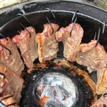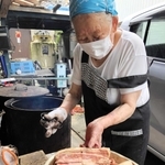 香ばしい香りが広がる焼き豚=西脇市黒田庄町喜多