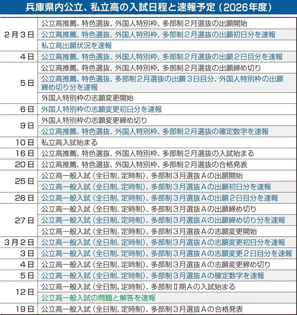 2026年度の高校入試シーズンを迎え、神戸新聞社は兵庫県教育委員会や兵庫県私立中学高等学校連合会への取材などを基に、出願状況などを神戸新聞NEXTで速報します。