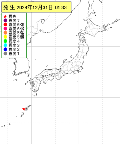 2024年12月31日01時33分ごろ 奄美大島北西沖 3.9 1