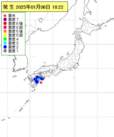 | 2025年01月06日18時22分ごろ | 日向灘 | 4.4 | 3 |