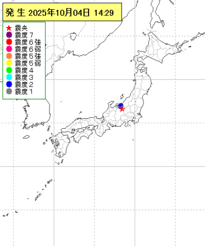 2025年10月04日14時29分ごろ | 新潟県上越地方 | 2.8 | 2 |