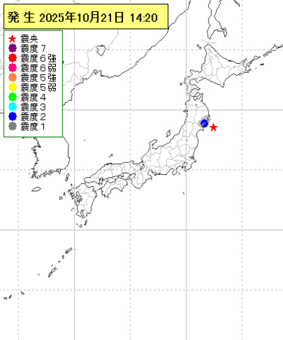 2025年10月21日14時20分ごろ | 宮城県沖 | 3.8 | 2 |
