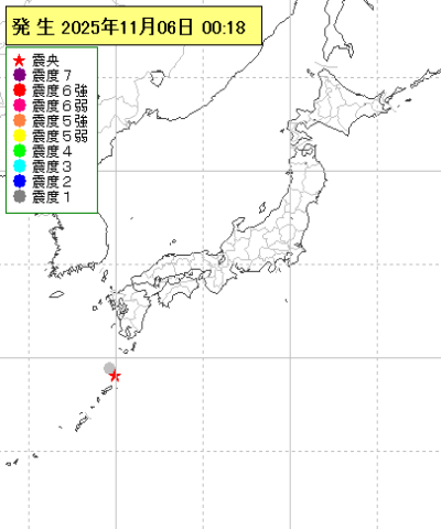 | 2025年11月06日00時18分ごろ | トカラ列島近海 | 2.1 | 1 |