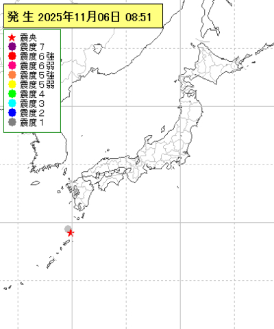 | 2025年11月06日08時51分ごろ | トカラ列島近海 | 2.1 | 1 |
